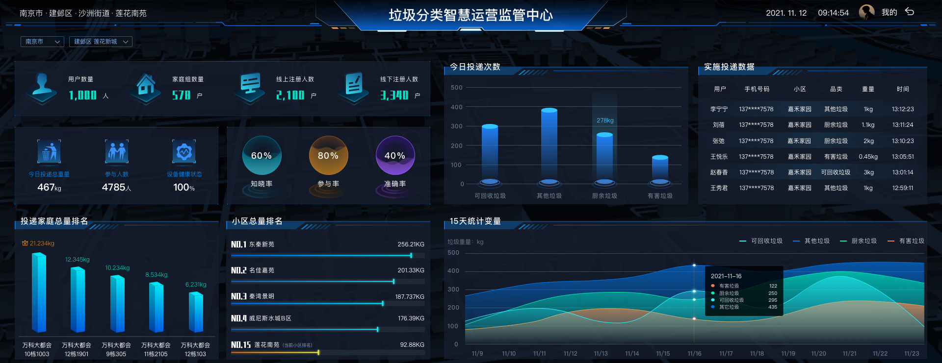 政府可以通過AI智慧運營系統的“駕駛艙”對全區域內的垃圾分類進行監管與指導